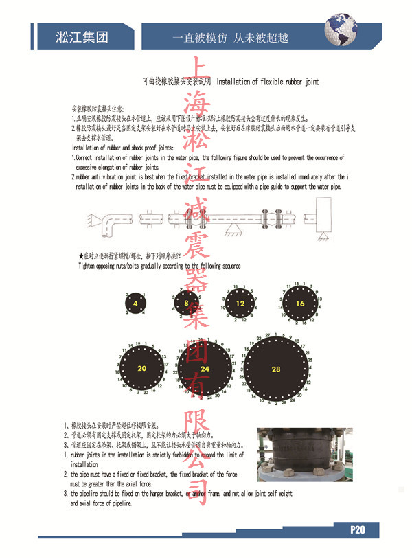 相信只要是橡膠接頭正規(guī)廠家說明書上都有關(guān)于安裝的相關(guān)頁面,百度上找不到完整的只是由于比較懶散,這里淞江集團(tuán)為大家?guī)黻P(guān)于安裝防震可曲繞橡膠接頭的安裝小細(xì)節(jié)文章說明以及圖文案例。